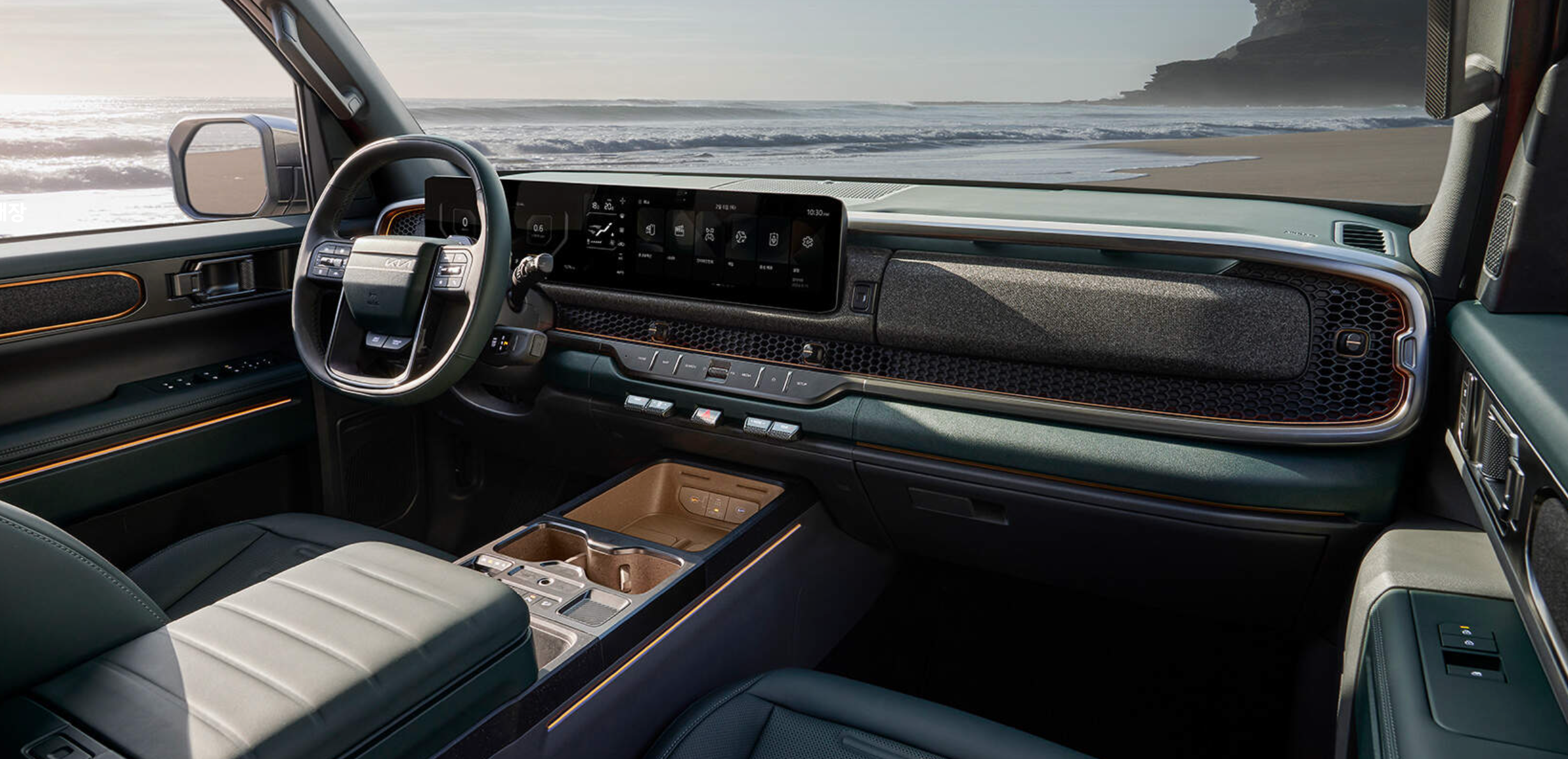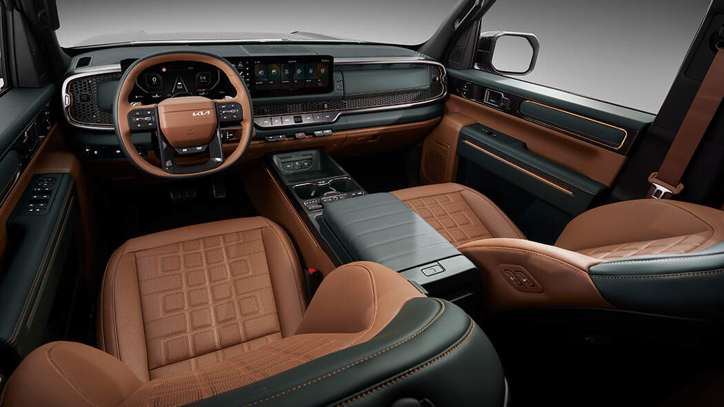 기아 타스만은 픽업트럭이지만, SUV에서 볼 수 있는 고급 소재와 마감 처리가 적용되었습니다.