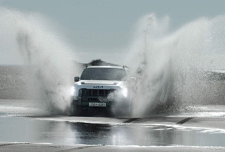 최대 3,500kg까지 견인할 수 있는 토잉(towing) 성능을 갖추고 있으며, 견인 중량에 따라 변속 패턴을 조정하는 '토우(tow) 모드'를 통해 주행 안정성과 연료 효율을 최적화했습니다. 또한, 흡기구를 측면 펜더 상단에 배치하여 800mm 깊이의 물을 시속 7km로 주행할 수 있는 도하 성능을 확보했습니다.