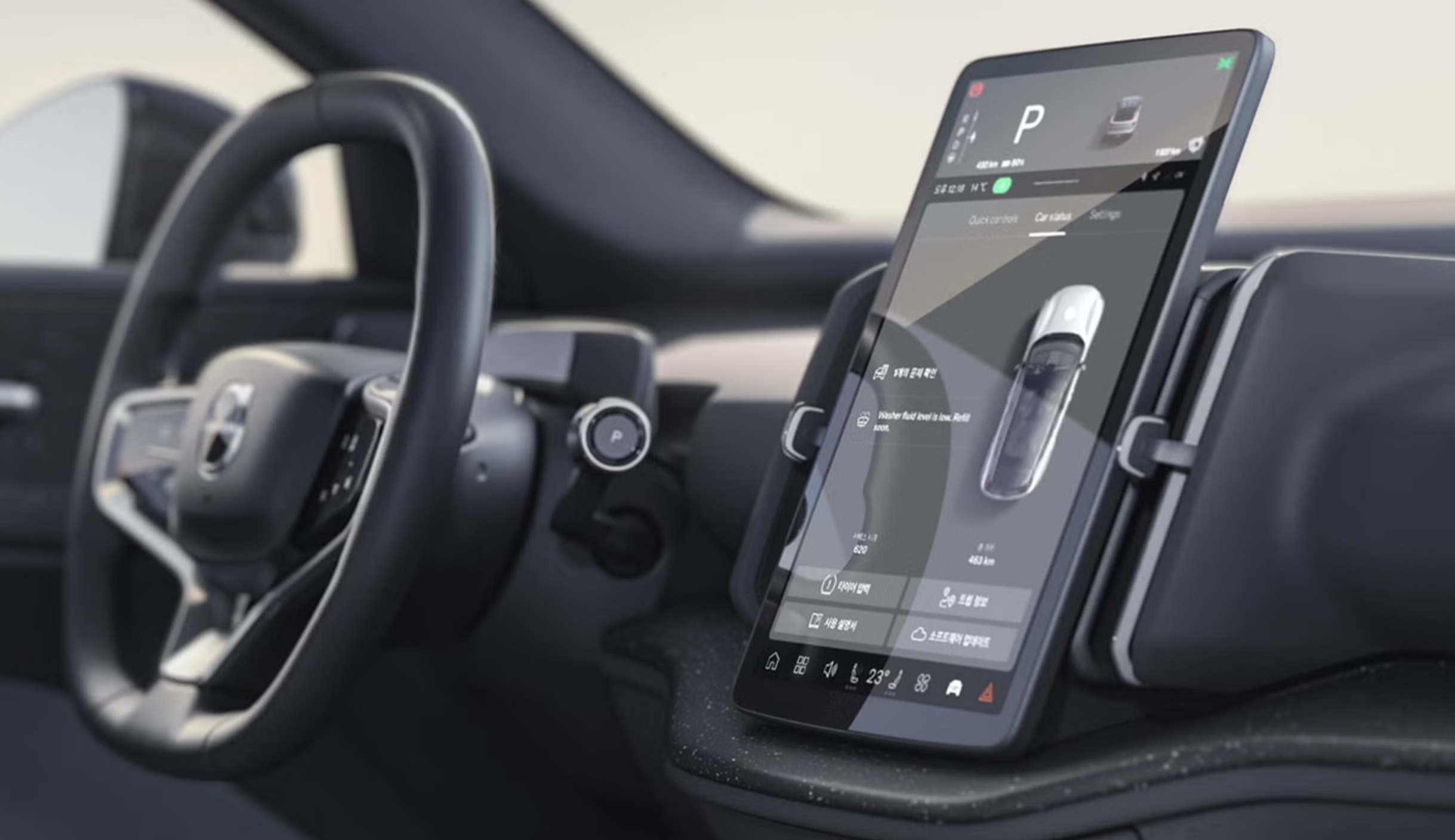 실내는 미니멀하면서도 실용적인 북유럽 스타일을 반영하여 깔끔하고 포근한 느낌을 줍니다. 중앙에 배치된 12.3인치 디스플레이는 내비게이션, 엔터테인먼트, 실내 온도 조절 등 다양한 기능을 직관적으로 제어할 수 있으며, 96% 이상의 한국어 인식률을 자랑하는 음성 인식 시스템 '누구 오토(NUGU AUTO)'를 통해 편의성을 높였습니다.